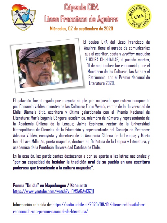 El Equipo CRA de nuestro liceo ha preparado una presentación para desear felices fiestas patrias a toda la comunidad educativa. Coordinadora CRA: Paola Olivares - Encargada CRA: Margarita Urbina